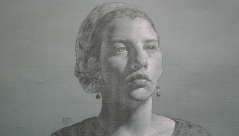 See, for instance the progression of the light on the chin of the model in the drawing above. The outside shape of the light on the chin is bounded above by the cast shadow of the lower lip and below by the form shadow, or terminator. To the right, the form of the chin wedges into forms of the lower lip, cheek and jaw. The light is most concentrated on the upper right of the chin form, just below the cast shadow of the lower lip, and diminishes gradually, as the form rolls away from the light toward the lower left. Eventually the chin drops into the shadow at the terminator. Note that the surface of the chin in the light adjacent to the terminator is quite dark in comparison to the lighter lights above.